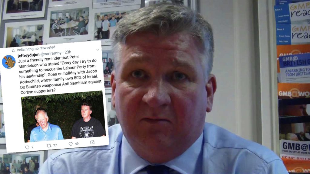 Senior GMB union official Neil Smith reportedly under investigation for retweeting suggestion that “Blairites weaponise antisemitism”