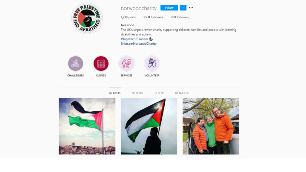 Instagram page of leading Jewish charity for children with learning disabilities hacked and plastered with “Free Palestine” messaging
