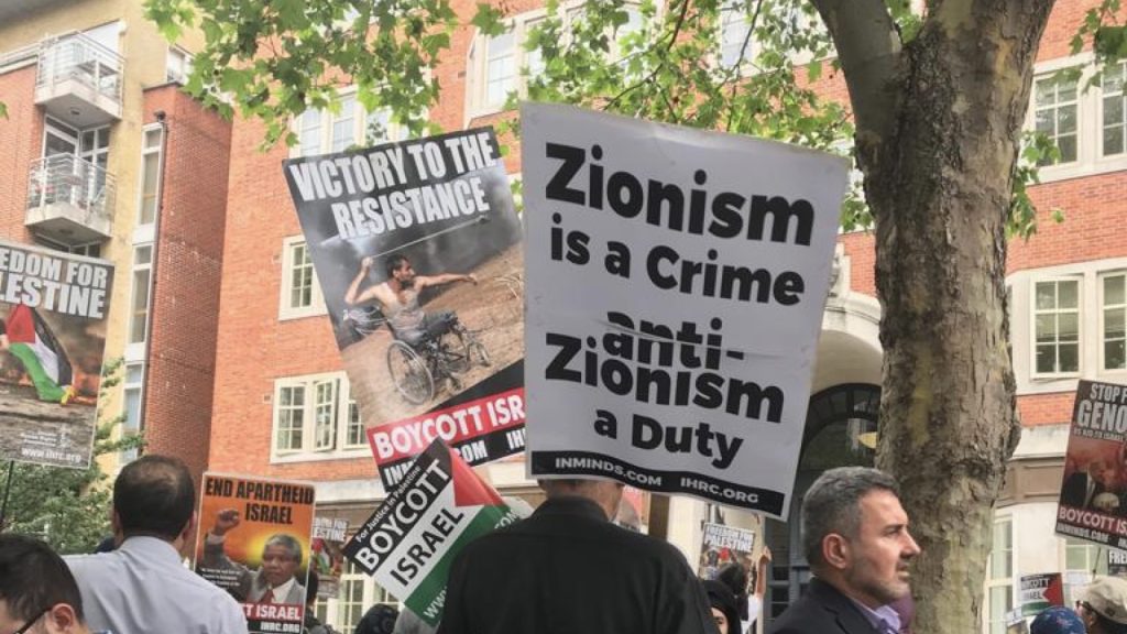 We will be discussing some of the placards with our lawyers. They declare it is a “duty” to oppose Zionism and that Zionism is a “crime”. All peoples have the right to self-determination under Art. 1 of the UN charter, and Zionism simply supports self-determination for Jews too. pic.twitter.com/0T60jtIXOM