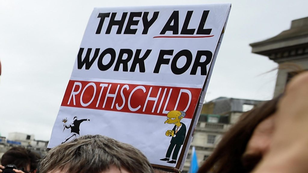 Antisemitic conspiracy myths have long placed the predominantly Jewish Rothschild family of bankers and philanthropists behind the world’s ills, accusing them of leading a global Jewish conspiracy. The myth gained widespread currency when the Nazis recognised its potency for turning Germans against the supposed hidden hand of the Jews, who their propaganda claimed was ruining Germany’s national future.