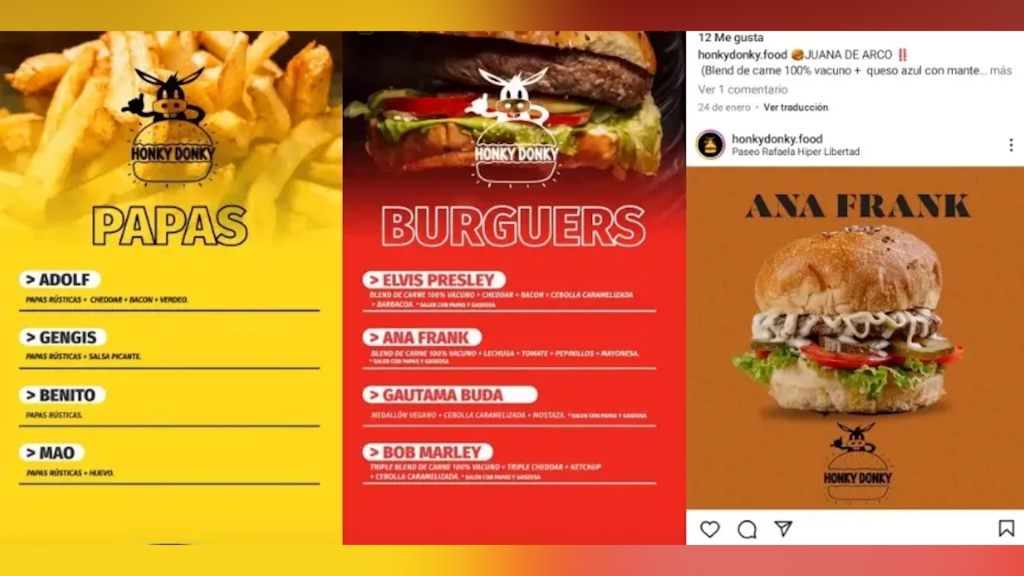 The Rafaela Jewish Community posted on Facebook: “A fast-food place in our city, banally uses the names of Anne Frank and Adolf to identify their products, the Jewish Community of Rafaela expresses its most sense of repulsion and indignation, communicating that legal action will be taken corresponding to the fact in question.”