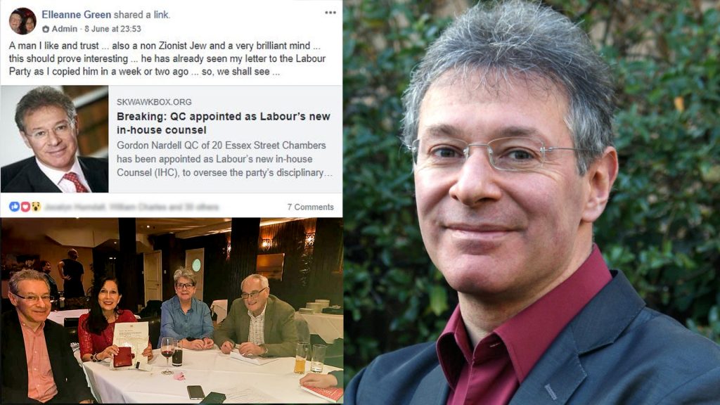 Mr Nardell was recently announced as the person in charge of overseeing Labour’s disciplinary process on antisemitism, and finally deal with the huge backlog of complaints. However, researcher David Collier has revealed that Mr Nardell counts Elleanne Green amongst his supporters. Ms Green, a prolific and obsessive poster of conspiracy theories, wrote in the virulently antisemitic “Palestine Live” Facebook group she founded that Mr Nardell is: “A man I like and trust…also a non Zionist Jew and a very brilliant mind…this should prove interesting…He has already seen my letter to the Labour Party as I copied him in a week or two ago…so, we shall see…”