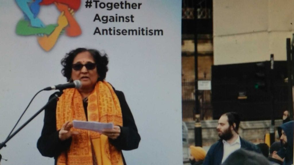 The President of the Hindu Forum of Britain, Trupti Patel, also spoke to the crowd of thousands at the #TogetherAgainstAntisemitism national rally in Parliament Square on Sunday.