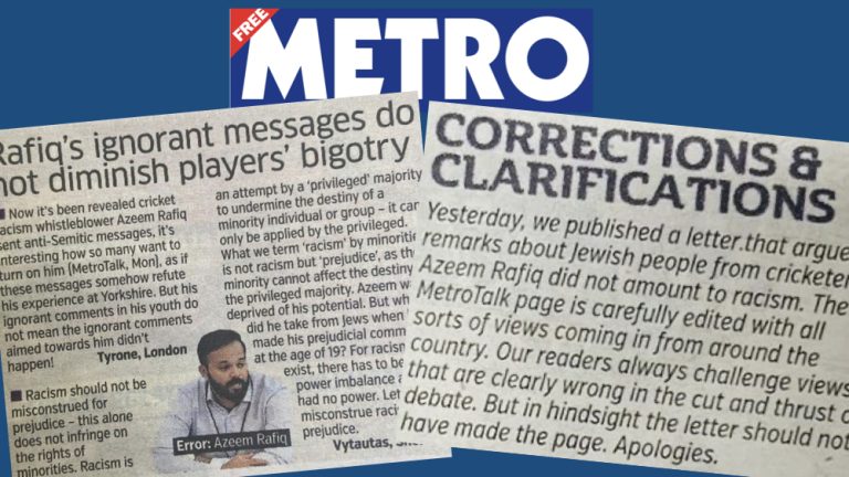 Metro apologises after CAA and others call out the newspaper for printing letter telling readers that racism against Jews matters less if it comes from a member of another minority