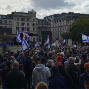 Attendees at the event included the disgraced Reverand Dr Stephen Sizer, who in January was handed a twelve-year ban by the Church of England after having been found to have “engaged in antisemitic activity” by a tribunal of the Church of England, and the controversial activist Jim Curran who was spotted holding a sign that read “The Nakba was a Holocaust”. Mr Curran has been seen with similar signs in the past and is a regular attendee at a group called Keep Talking, a group of far-right and far-left conspiracy theorists who come together to promote antisemitism.