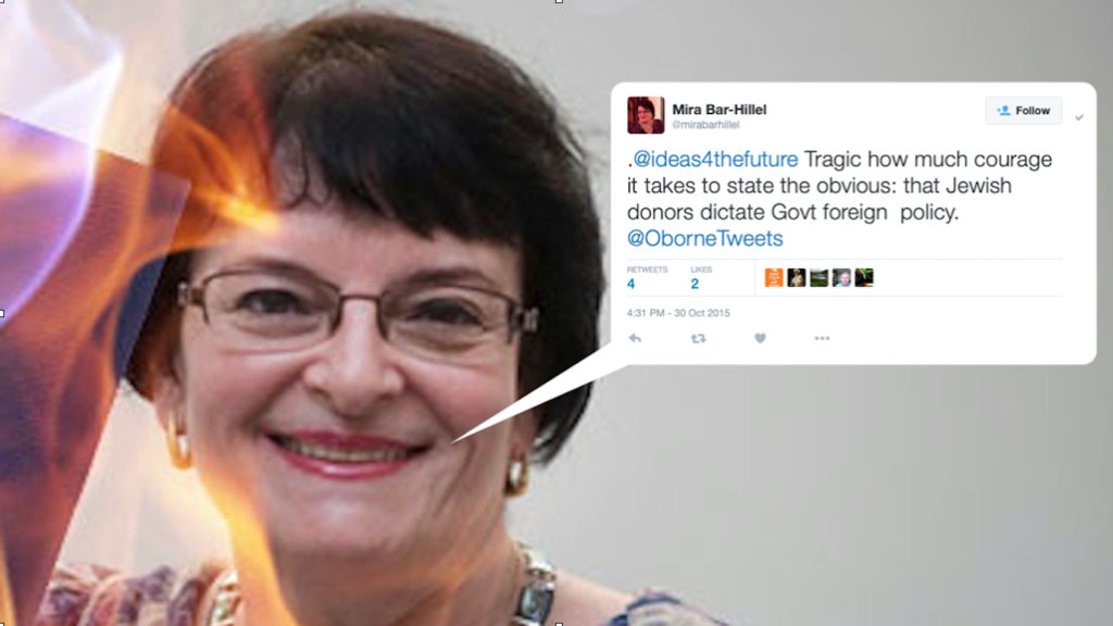 After Campaign Against Antisemitism denounced the journalist Mira Bar-Hillel for her recent spate of Jew-baiting tweets and mockery of the Jewish Chronicle’s editor, Stephen Pollard, over his cancer, Ms Bar-Hillel has doubled down, calling those who expressed their revulsion at her “unloved trolls” and Mr Pollard a “schmuck”.
