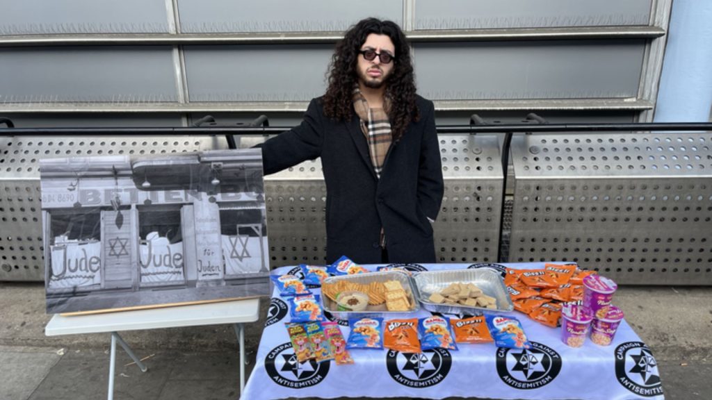 Last week, 92 years later, we set about to educate the public about this incident. We offered kosher snacks – Jewish products – to members of the public, and engaged them in dialogue about the impact of historical and present-day boycotts on the Jewish community.