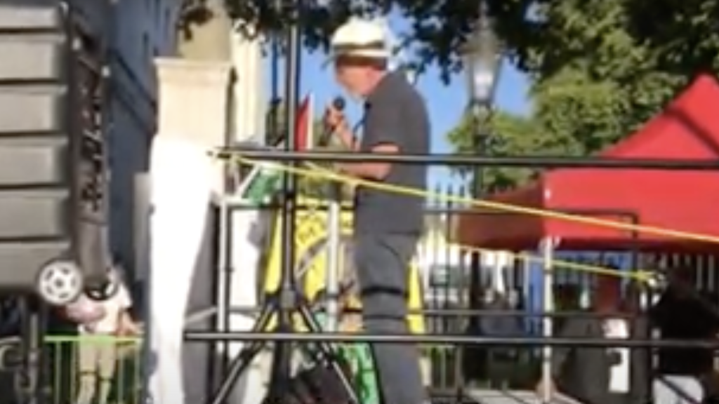 In footage published by the Jewish News, Glyn Secker, the Secretary of JVL, can appear to be heard making the remarks in his speech at a protest this week organised by Stop The War, the Palestine Solidarity Campaign and Friends of Al Aqsa.