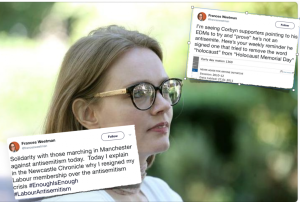 A Newcastle Councillor, Dipu Ahad, has posted a tweet dismissing Frances Weetman’s resignation from the Labour Party in protest at the Party’s handling of antisemitism by sarcastically asking: “this is a big loss to ..erm..??”