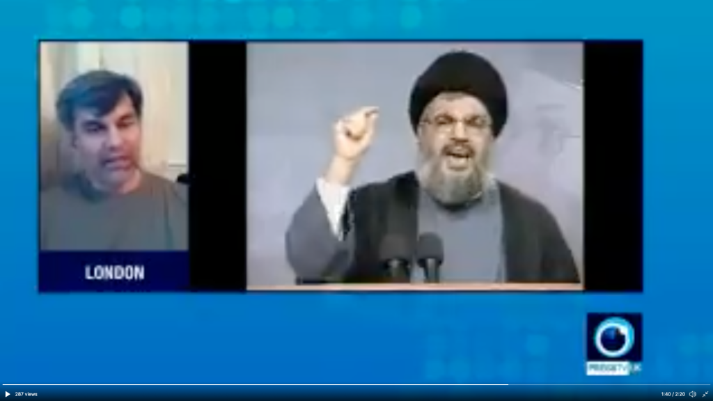 Additionally, Mr Kazim has appeared on Press TV, an Iranian state-owned news network whose British broadcasting licence was revoked by Ofcom in 2012. The network has a history of giving platforms to notorious antisemites and Holocaust deniers. In one appearance, Mr Kazim can be seen speaking on the ban of Hizballah in Britain and the impact that this will have on future Al-Quds Day parades. He states that “there’ll be surprises for the authorities and for the Zionists as there have been every year”. Mr Kazim can also be seen talking about the influence of Al-Quds Day parades whilst images of people burning an Israeli flag play in the background.