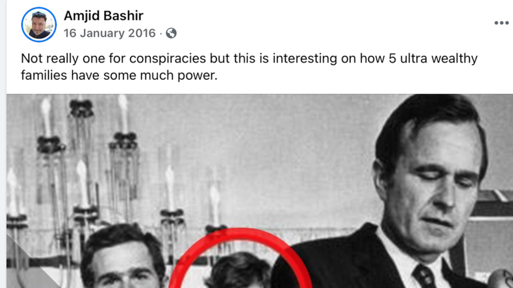 According to the JC, a video from 2016 remains visible on the Facebook profile of Amjid Bashir, a broadcaster and Justice of the Peace, which contains a link to a five minute video that claims that the Rothschild family – common protagonists in antisemitic conspiracy theories – “maintains its control through the US Federal Reserve”.