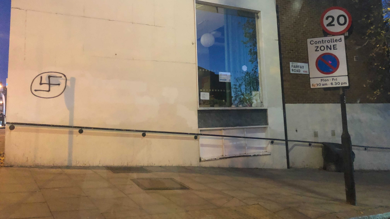 Police seek witnesses after arresting teenager on suspicion of spraying swastika graffiti near London synagogue
