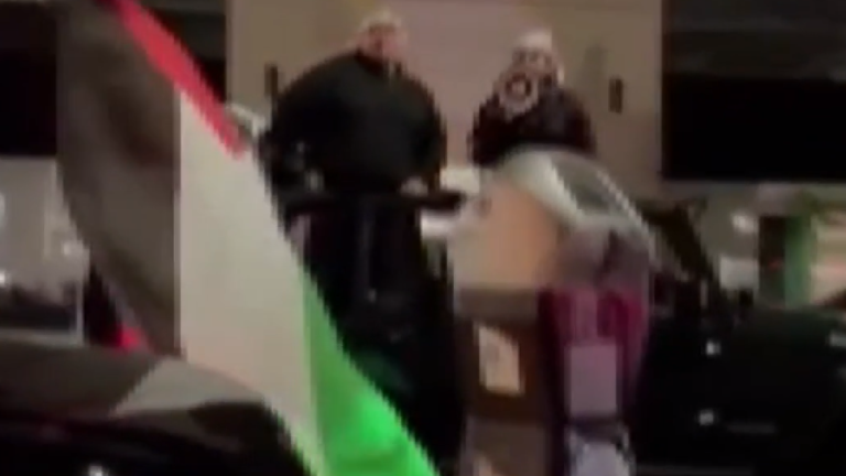 Jim Curran, who has history of involvement in controversial conspiracy group, protests Puma with sign reading “Gaza is a Holocaust”