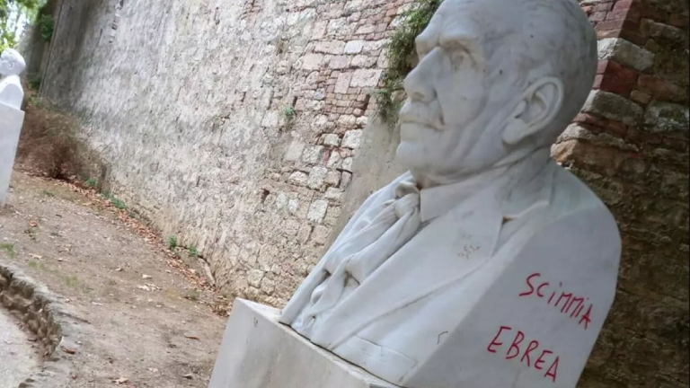 “Jewish Monkey” graffiti scrawled across bust of Italian anti-fascist