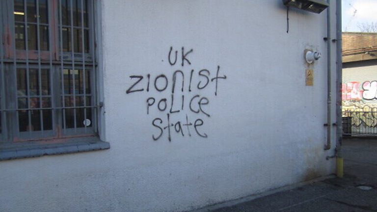 “Shocking and insulting” hate speech sprayed across a wall in Hackney calling the UK a “Zionist police state”