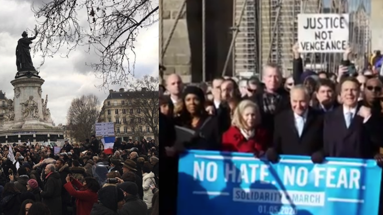 Thousands rally first in the UK and now in America and France as antisemitic crime surges on both sides of the Atlantic