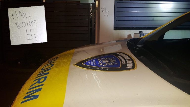 London Jewish family calls Shomrim after finding swastika and “Hail Boris” graffiti on their home