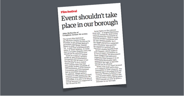 Local paper publishes letter from man demanding that UK Jewish Film Festival be banned in his borough