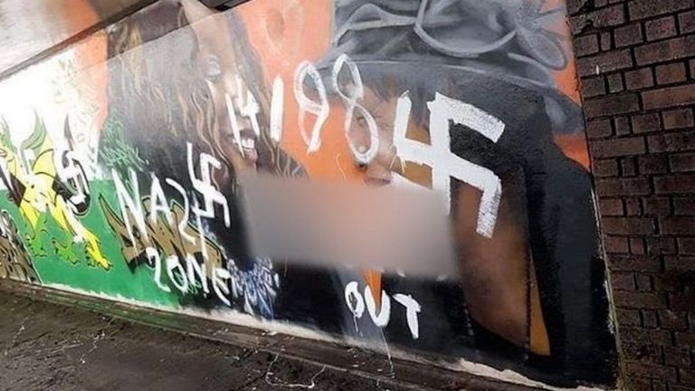 Welsh teenager who daubed swastikas and “Nazi zone” on mural pleads guilty to criminal damage and terror offences