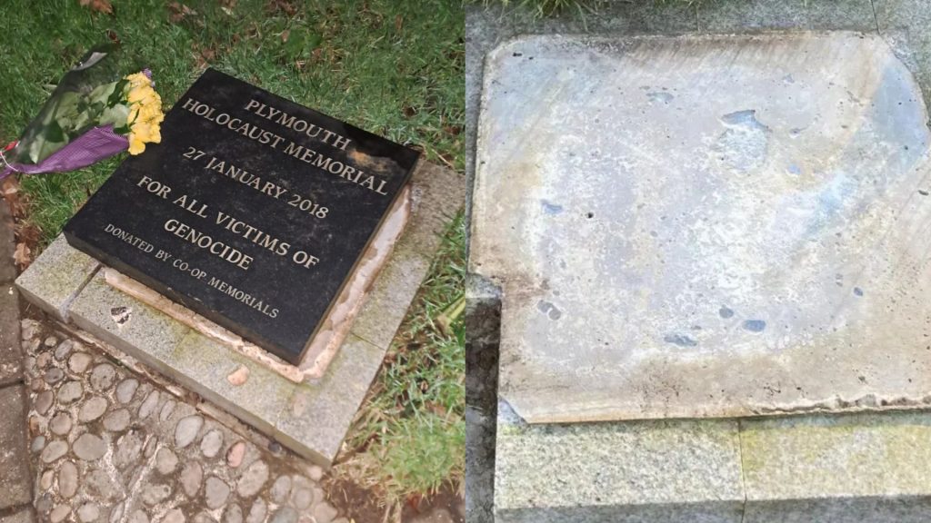 Police are investigating a potential hate crime after a Holocaust memorial in Plymouth was discovered damaged last month.