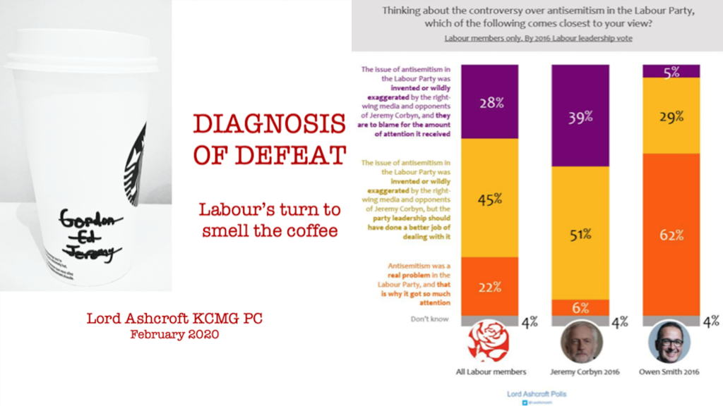 Nearly three quarters of Labour members said that the issue of antisemitism in the Party was “invented or wildly exaggerated by the right-wing media and opponents of Jeremy Corbyn”, according to a new poll by Lord Ashcroft. That number rose to over 90% among members of the pro-Corbyn Momentum group.