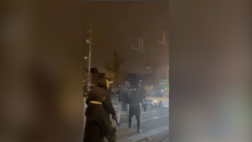 Footage from the evening showed people running for their lives, an unconscious body being kicked in the street and a man begging for mercy as attackers yelled “Free Palestine”.
